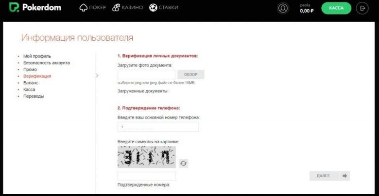 В качестве еще одного весомого факта выступает стремление избежать трудностей с кэш-аутом, поскольку любой скандал финансового характера отрицательно сказывается на репутации гемблинг площадки. Верификация в ПокерДом практически ничем не отличается от большинства зарубежных покерных комнат, только здесь она более простая.